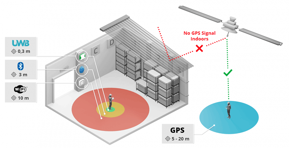 centimeter-level location tracking, integrating with WMS (Warehouse Management System)
